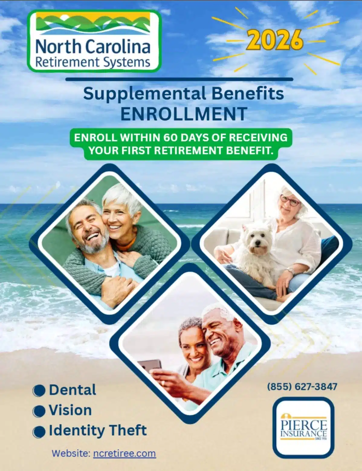 Pierce Insurance will mail you an enrollment book that summarizes the supplemental benefits that are available to you as a retiree with the North Carolina Retirement Systems.